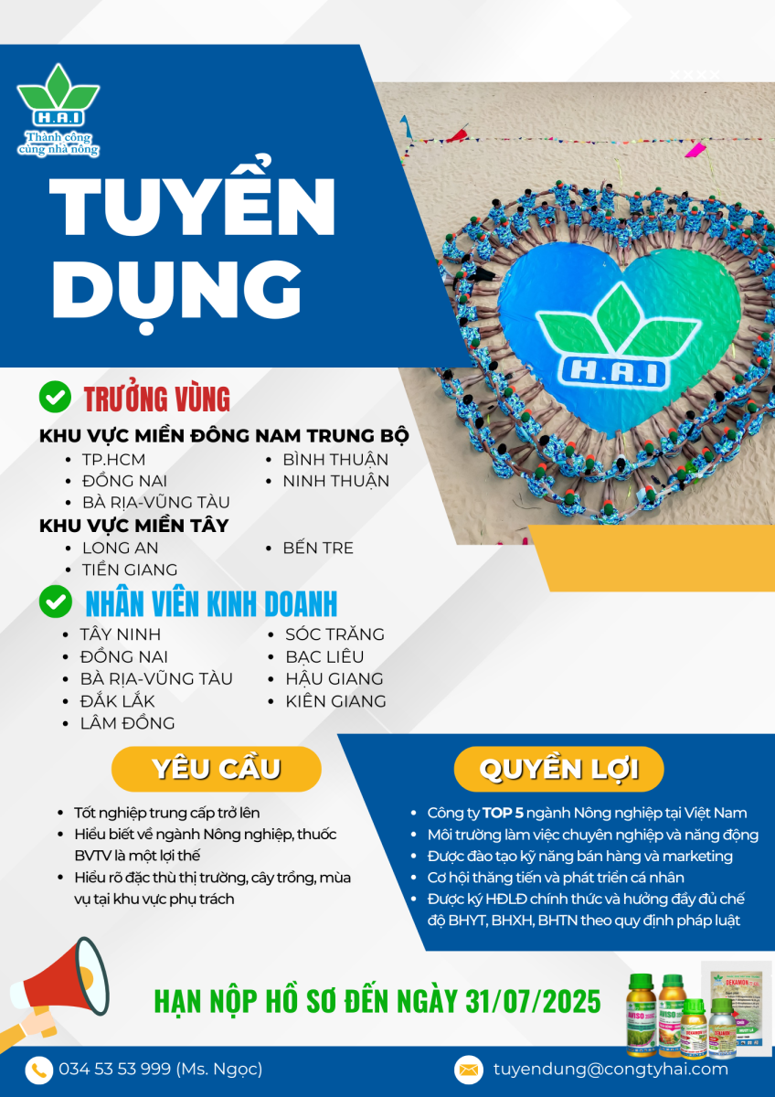 Mail: Tuyendung@congtyhai.com hoặc liên hệ trực tiếp