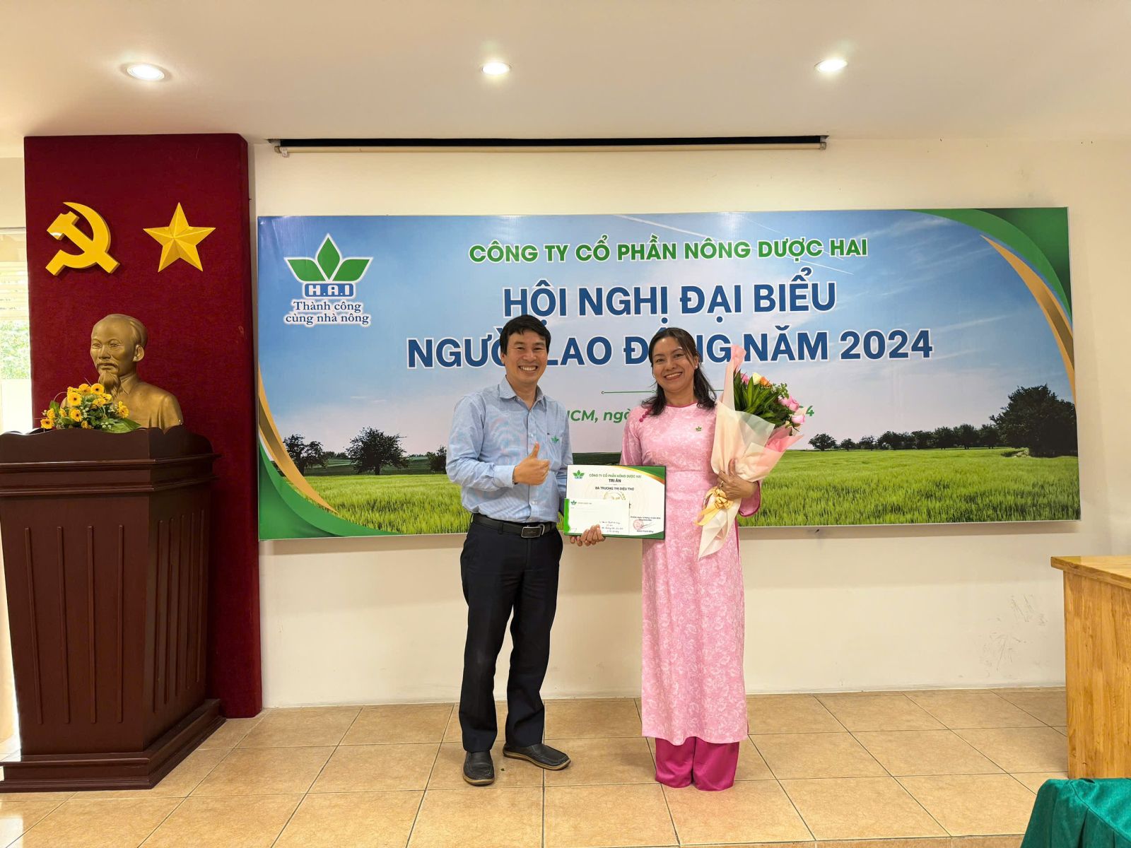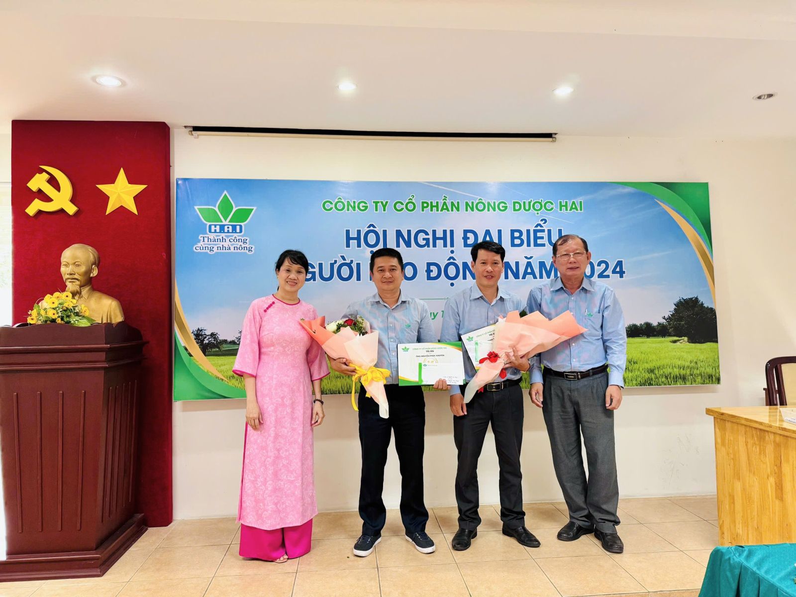 Sáng nay, ngày 12/12/2024, Công đoàn cơ sở Công ty cổ phần Nông Dược HAI đã tổ chức chương trình Hội nghị đại biểu Người lao động năm 2024. Hội nghị vinh dự có sự tham dự của ông Nguyễn An Lợi - Chủ tịch Công đoàn Khối bộ NN&PTNN, ông Quách Thành Đồng – Phó Chủ tịch Hội đồng Quản trị (HĐQT), Tổng giám đốc Công ty cùng đại biểu Người lao động của các Chi nhánh, Phòng Ban và Đơn vị thành viên trên toàn quốc.
