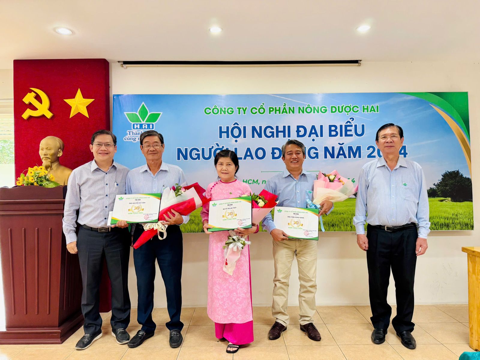 Trên tinh thần luôn lấy những người lao động là bước đi hàng đầu, Ban lãnh đạo Công ty trao quà tri ân cho Người lao động có quá trình làm việc và cống hiến cho Công ty với cột mốc 10, 15, 25 và 30 năm. Những nhân viên được tri ân xúc động gửi lời cảm ơn đến sự quan tâm của Ban lãnh đạo Công ty và động viên toàn thể Người lao động đang công tác tại ngôi nhà Nông Dược HAI tiếp tục phấn đấu, cùng HAI bức phá và phát triển.