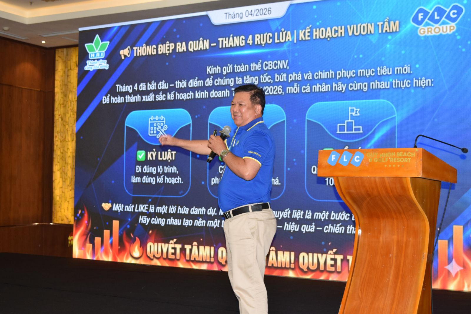 Trong hai ngày 09–10/4/2026, Công ty CP Nông Dược HAI đã tổ chức thành công rực rỡ Chương trình Sơ kết Quý I/2026 và Hội nghị Người Lao động 2025–2026 tại quần thể FLC Quy Nhơn. Sự kiện không chỉ ghi dấu những con số tăng trưởng ấn tượng mà còn là lời khẳng định cho tinh thần đoàn kết, sẵn sàng bứt phá của toàn hệ thống.