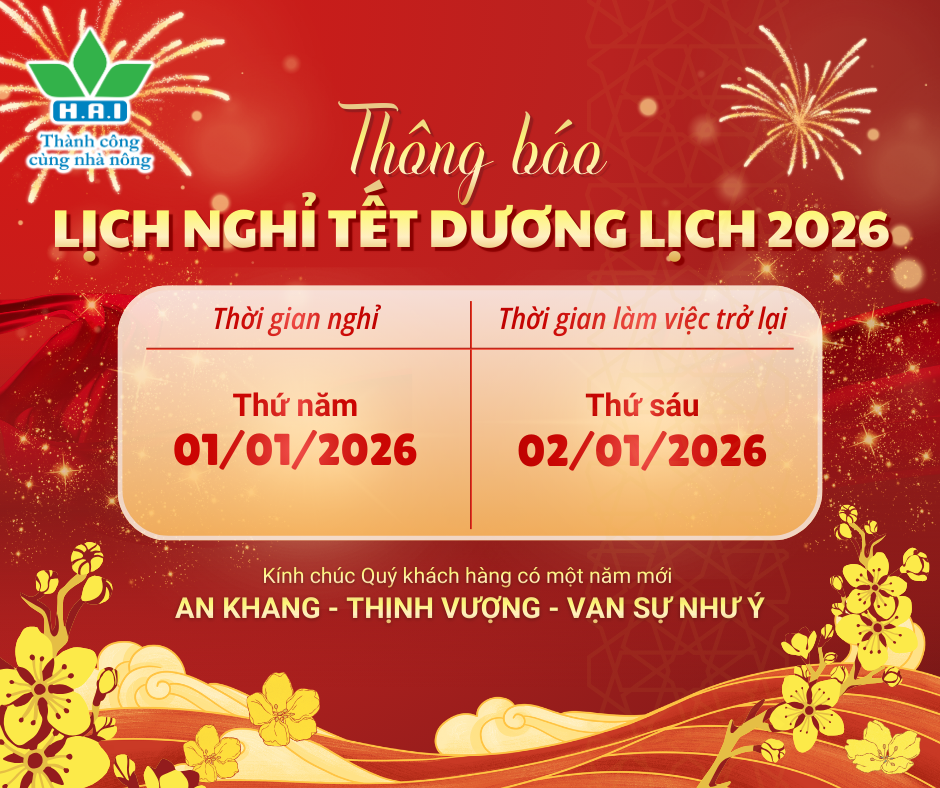 NÔNG DƯỢC HAI kính chúc Quý Đối tác, Quý Khách hàng và Bà con nông dân một năm mới An khang – Thịnh vượng – Vạn sự như ý, đón Tết Dương Lịch vui vẻ, hạnh phúc bên gia đình và người thân.